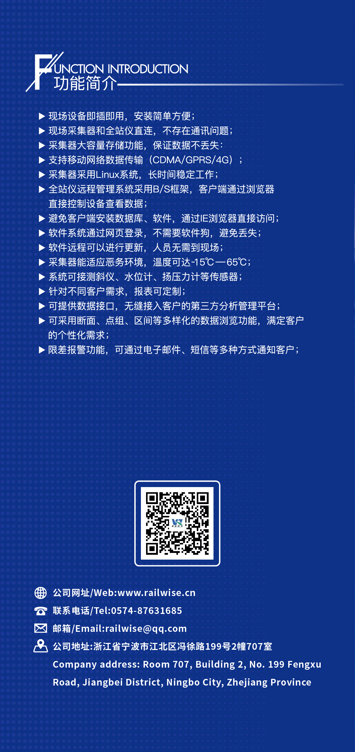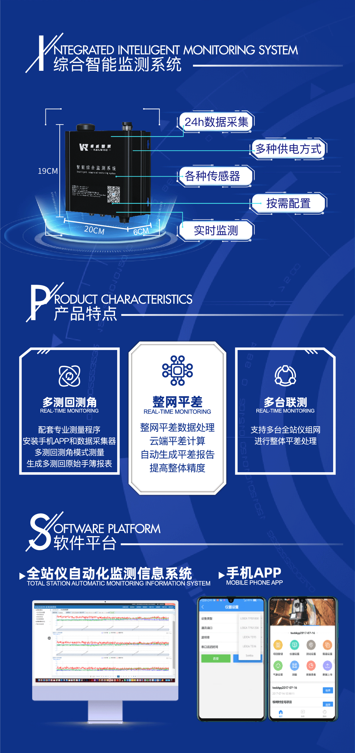 睿威智测RailWise智能综合监测系统是一款集高精度测量、自动化控制、数据实时分析于一体的智能监测系统,基于先进的云端数据平差、处理及管理平台,为工程变形监测、结构健康监测等场景提供全流程解决方案。系统支持多类型全站仪接入,具备远程控制、智能平差、实时预警等核心功能,可广泛应用于地铁、铁路、公路、桥梁、矿山、建筑等领域,助力用户实现监测数据的自动化采集、管理与分析。